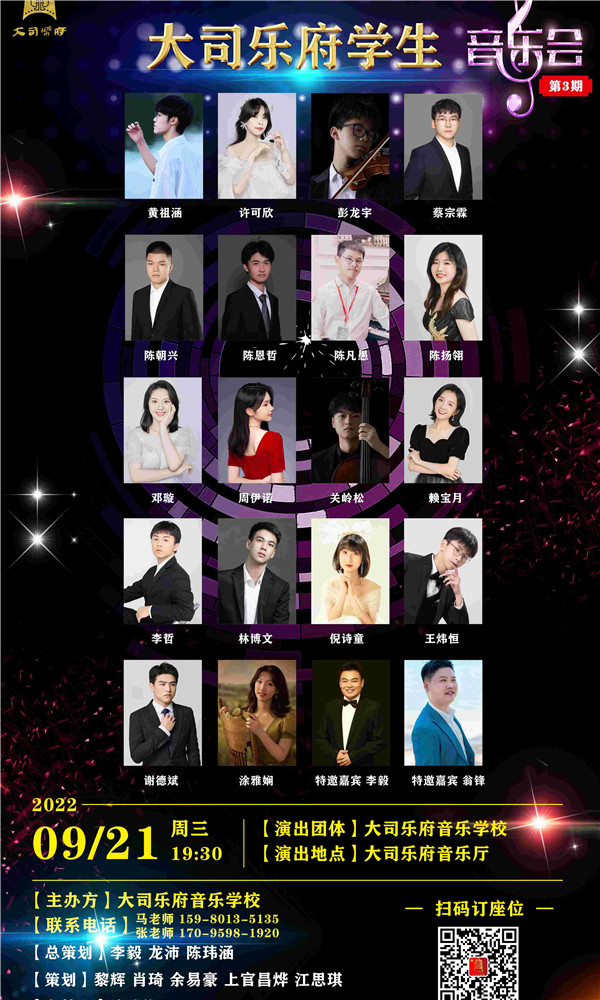 福州高新区教育局批准成立,专业从事音乐高考考前集训的培训学校大司乐府创始于2009年,取名于西周时期宫廷音乐机构“大司乐”。据历史记载“大司乐”是我国古代最早的音乐教育机构,承担着贵族子弟和学士的音乐教育任务。大司乐府传承“大司乐”的办学理念,专注优质音乐艺考生的课程研究,开设了声乐、器乐、视唱练耳、乐理、作曲、音乐学、艺术管理等专业课程,坚持把专家“请进来”,把学生“带出去”,定期与全国音乐艺考培训学校交流学习。经过多年的教学研发,已从教学实践中逐渐形成集教学、练习、周考、模拟考、大师班、游学、报考、送考、志愿填报等为一体的完整艺考教学体系。研发出了翻转式教学法,将感恩教育、励志教育、激情教育和技能教育融入课堂,极大的提高了学生的积极性和主动性。为中央音乐学院、中国音乐学院、上海音乐学院、华东师范大学、厦门大学、浙江音乐学院福建师范大学、星海音乐学院等名校输送了大批音乐人才。